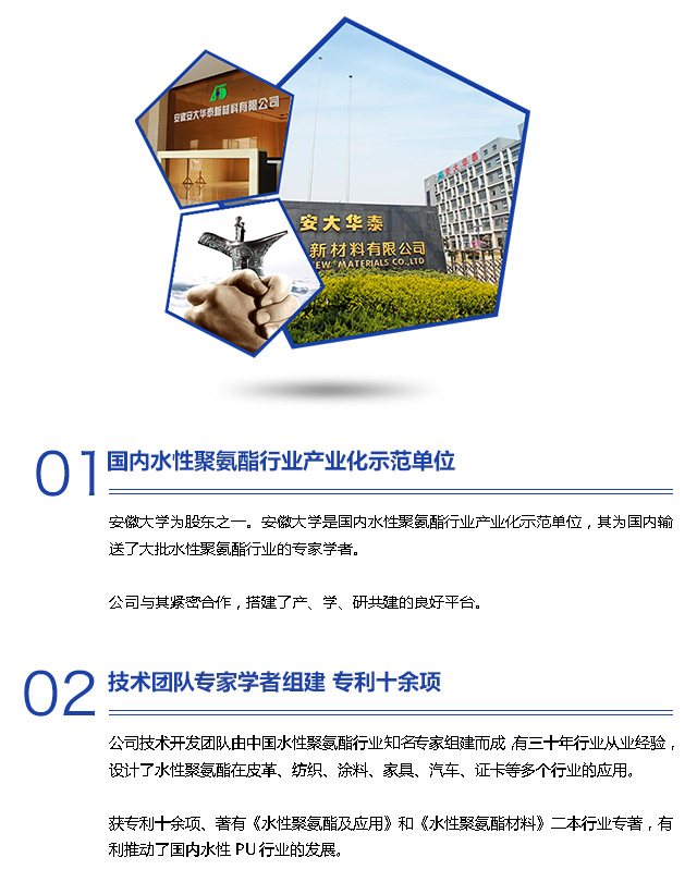 安徽安大華泰新材料有限公司創(chuàng)建于2002年,公司致力于水性聚氨酯膠粘劑產(chǎn)品的研發(fā)、生產(chǎn)和銷售以及定制。主要有水性真空吸塑膠,水性復(fù)合膠,水性汽車內(nèi)飾膠、靜電植絨膠等熱銷產(chǎn)品。產(chǎn)品應(yīng)用于家居、汽車、印刷包裝、紡織、制鞋等領(lǐng)域。