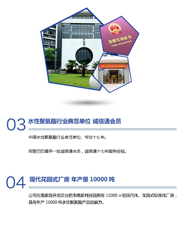 公司與國內(nèi)知名大學(xué)安徽大學(xué)緊密合作,產(chǎn)學(xué)研相結(jié)合,聯(lián)合成立了水基高分子材料安徽省工程技術(shù)研究中心。目前公司擁有專利十余項,中小型企業(yè)科技部項目2項,安徽省新產(chǎn)品6項。