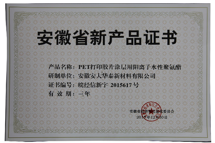 安徽省新產(chǎn)品證書